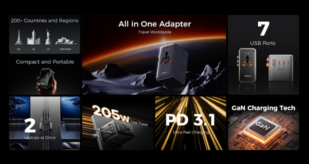 Traveling with technology is no longer a luxury; it’s a necessity. Whether you’re on a business trip or exploring new cities, staying connected is crucial. But managing multiple devices, plug types, and power demands across borders can be frustrating. The TESSAN Voyager 205 Universal Travel Adapter aims to solve these issues with one compact, high-powered solution. Designed for today’s global traveler, it brings reliable performance, convenience, and smart design into a single charging hub.