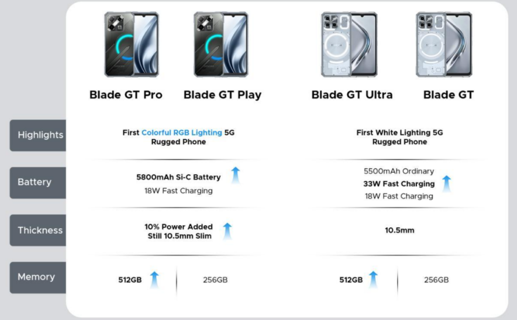 The DOOGEE Blade GT Series is a bold step forward in rugged smartphone design. By merging RGB lighting with powerful battery tech in a thin, durable body, DOOGEE has created a series that stands out for both function and flair.