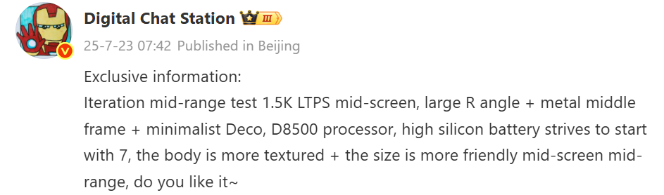 Redmi is reportedly working on the Redmi Note 15 series of smartphones, which is expected to break cover by August in China. In November, the brand may unveil the Redmi K90 series of smartphones. It is speculated that the company may unveil the Redmi Turbo 5 either by the end of this year or early January 2026 in China. Today, reliable tipster Digital Chat Station released a Weibo post to share what appear to be the key specifications of the Turbo 5.