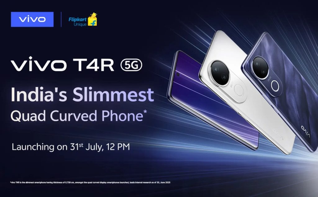 Vivo has confirmed that the Vivo T4R 5G will launch in India on July 31. This will be the company’s next phone in the T4 series. Vivo says it will be India’s slimmest phone with a quad-curved display, measuring just 7.39mm in thickness.