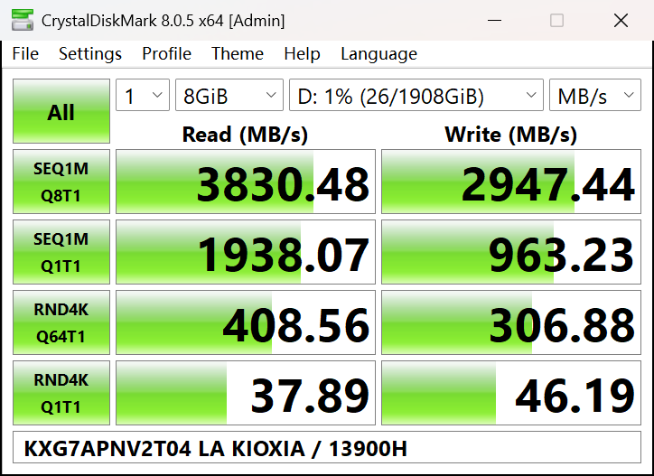 On the PC, the TERRAMASTER breaks out to 3800MB/s for sequential reads. But it is only faster on sequential reads and writes. It’s quite a bit slower with a direct PC install. The SSDs switched to Gen3 performed the same.