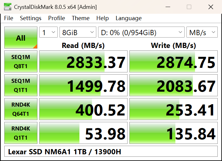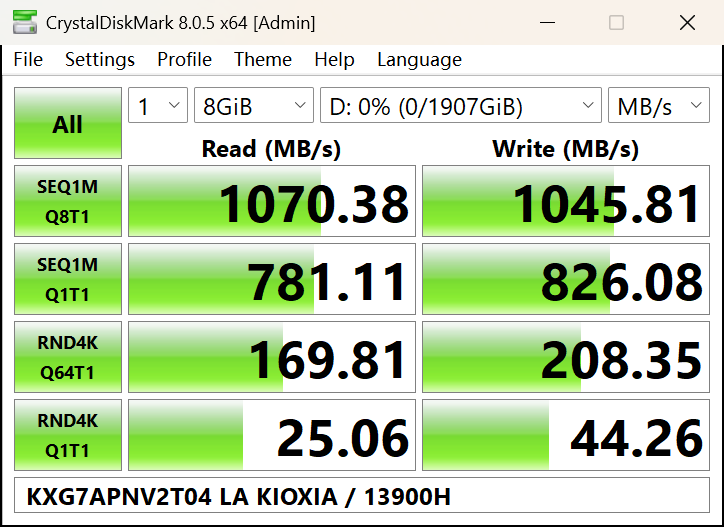 What about USB 2.0, which has a bandwidth of only 480Mbps? Again, it was recognized and used properly. It’s just that the speed is limited by the interface, and it’s very slow.