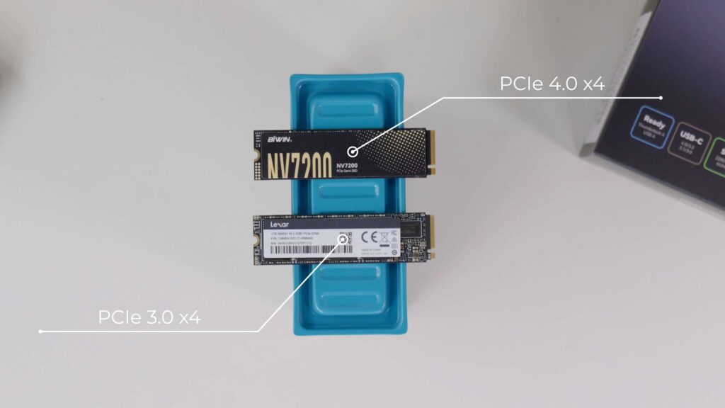 Next, let’s see how it performs. Here we have two SSDs with different speeds, one is a mainstream PCIe Gen4 SSD and the other is a relatively old PCIe-3 SSD.