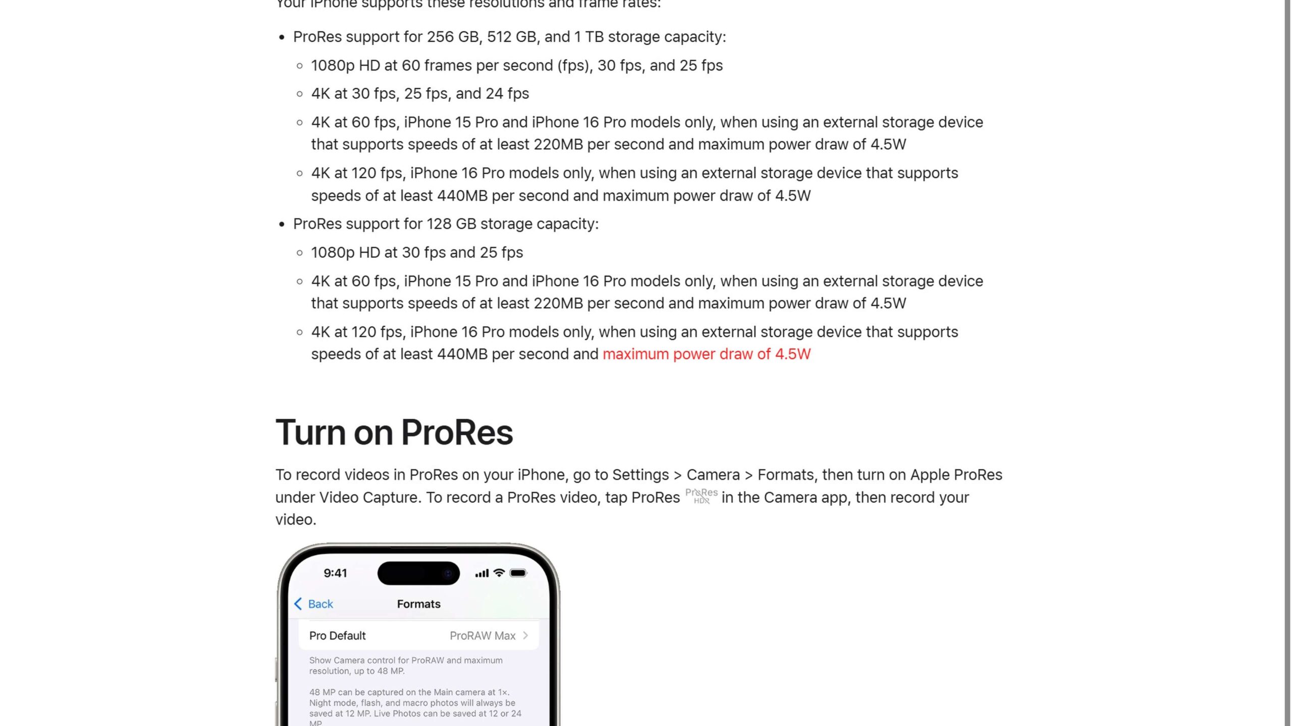 So we tested it on this iPhone 16 Pro. At the beginning, the SSD was not recognized by the iPhone, and after checking, we found that Apple recommends that external storage devices consume less than 4.5W when connecting an SSD to the iPhone, so that should be the reason why we couldn’t recognize it correctly. The typical power consumption of this SSD is 8W, which is far more than the iPhone’s limit.