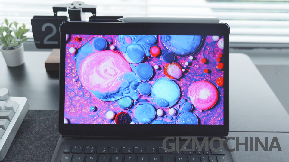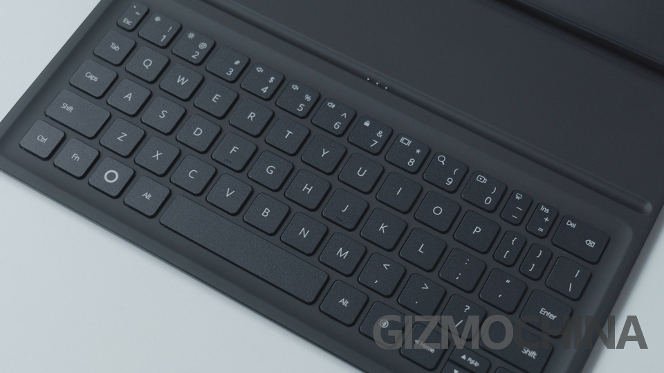 The detachable smart keyboard weighs 435g. Key travel is 1.5mm, similar to a low profile keyboard already, the flex feels good. The single-angle kickstand is sturdy on desks, and it connects the keyboard via magnet. The keyboard can also be separated, if you want to create a certain space between the tablet and the keyboard.