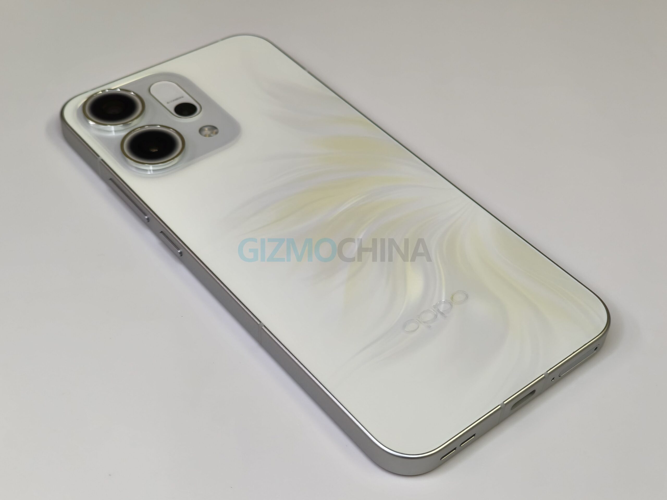 The first thing you notice about the Oppo Reno 14 5G’s Pearl White edition is how its finish catches the light. The rear panel creates subtle patterns as you tilt it, giving it a premium look without being overly flashy. Oppo’s Velvet Glass treatment gives the back a silky texture that resists fingerprints, keeping the device clean even after long sessions of use.