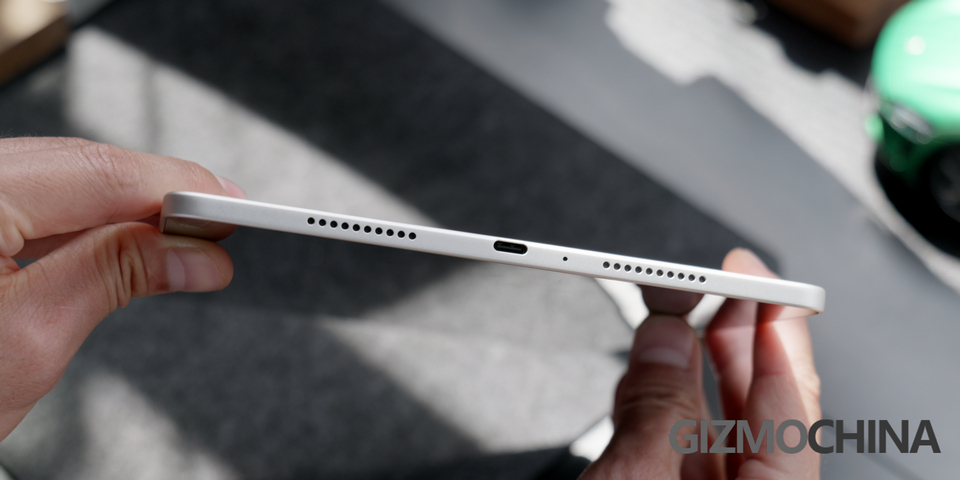 Honestly, I was not quite a fan of the previous Xiaoxin Pad, the design is rather mediocre, and too boxy which is not quite comfortable to hold, but not for the new Xiaoxin Pad Pro GT. As you can see, it is very thin and light, and the edges are rounded. To help you visualize how thin it is, here is the Type-C port, the tablet itself is just a bit thicker than it, right? The size is just like the iPad Air 11 inches, and the weight is also the same.