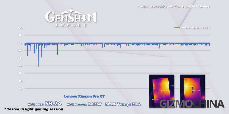 Since it uses the Snapdragon 8 Gen 3, BUT! It is a six-core version, meaning it is a downgraded 8 Gen 3, and the performance is just slightly better than 8s Gen 3. The Benchmark test shows it is still a powerful tablet, so we ran a gaming test with Genshin Impact.