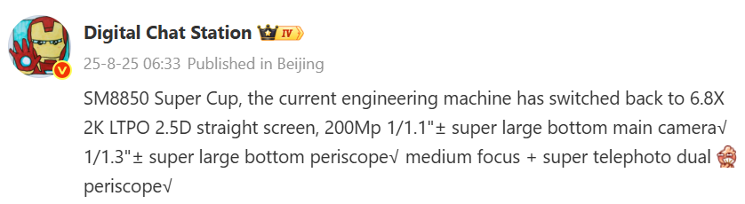 DCS further claims that the rear camera setup of the Find X9 Ultra will include a 200-megapixel main sensor sized at 1/1.1-inch, along with a periscope telephoto camera using a 1/1.3-inch large sensor. He also reiterated that the phone would carry another periscope telephoto unit, reinforcing Oppo’s aim of delivering a multi-focal zoom experience.