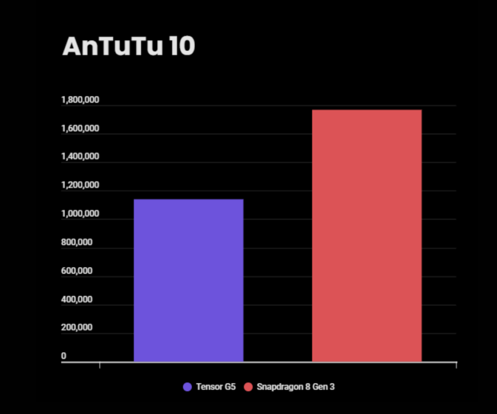 Tensor G5 vs Snapdragon 8 Gen 3 AnTuTu score