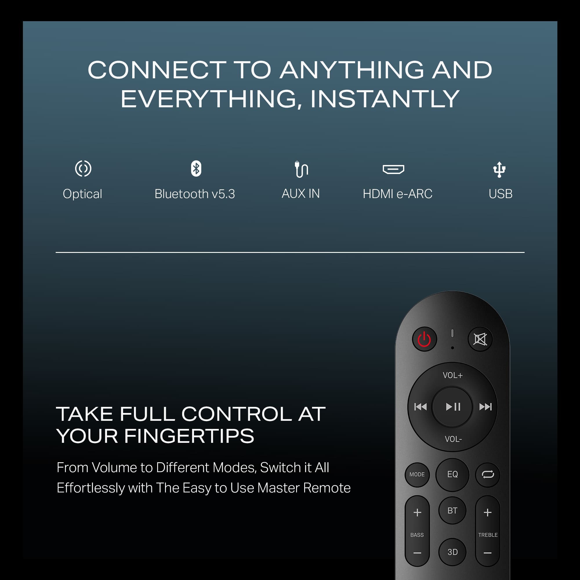 Both soundbars include Bluetooth v5.3, HDMI eARC, USB, AUX, Coaxial, and Optical ports for connectivity. A one-year warranty is provided.