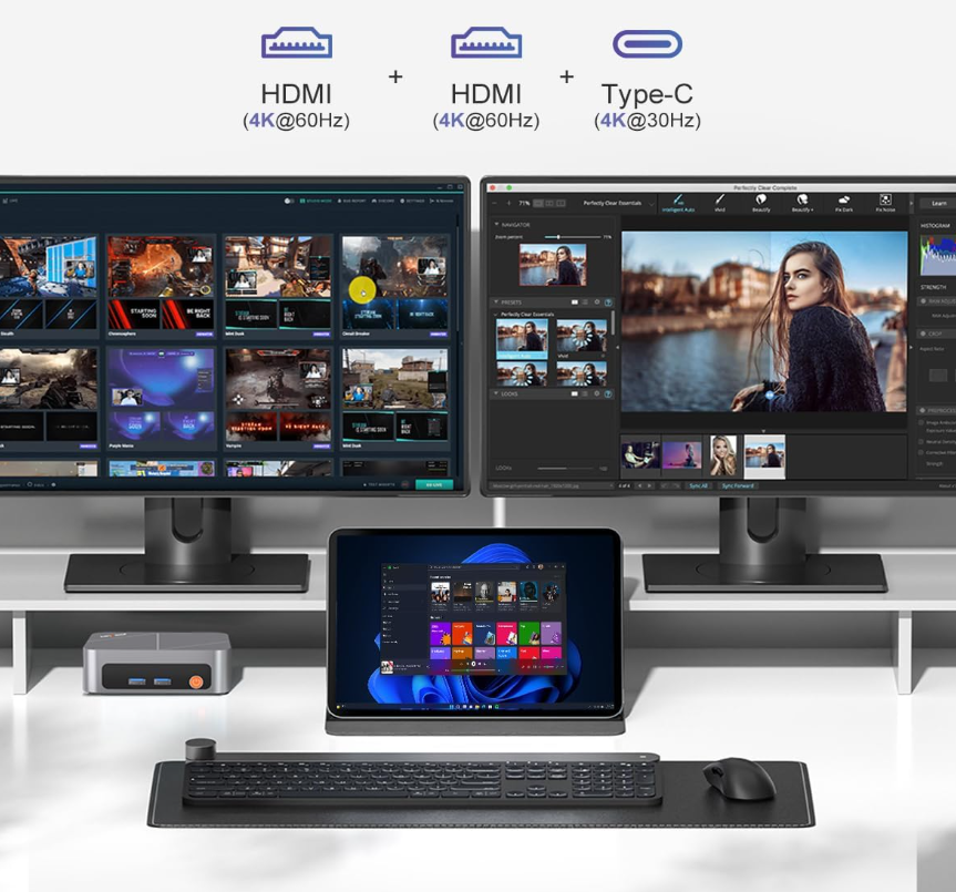 Built with a full aluminum alloy case, the M7 is both durable and stylish. The material helps with heat dissipation, while the smart cooling system keeps the device quiet and efficient. Its compact form factor makes it perfect for small desks, and with VESA mount support, it can even be attached behind a monitor to save space.