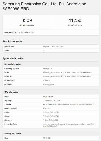 But a fresh round of testing shows that Samsung’s tuning has paid off. The new results push the chip to a single-core score of 3,309 and a multi-core score of 11,256. The scores put it ahead of the Snapdragon 8 Elite, but the 8 Elite 2 still performs slightly better in its early benchmark.