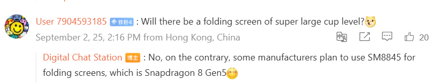 DCS said that the Snapdragon 8 Gen 5 is currently being tested by manufacturers such as Honor, Oppo, and Vivo, and he plans to share his own hands-on results soon. He added that some brands are considering using the Snapdragon 8 Gen 5 for foldable phones.