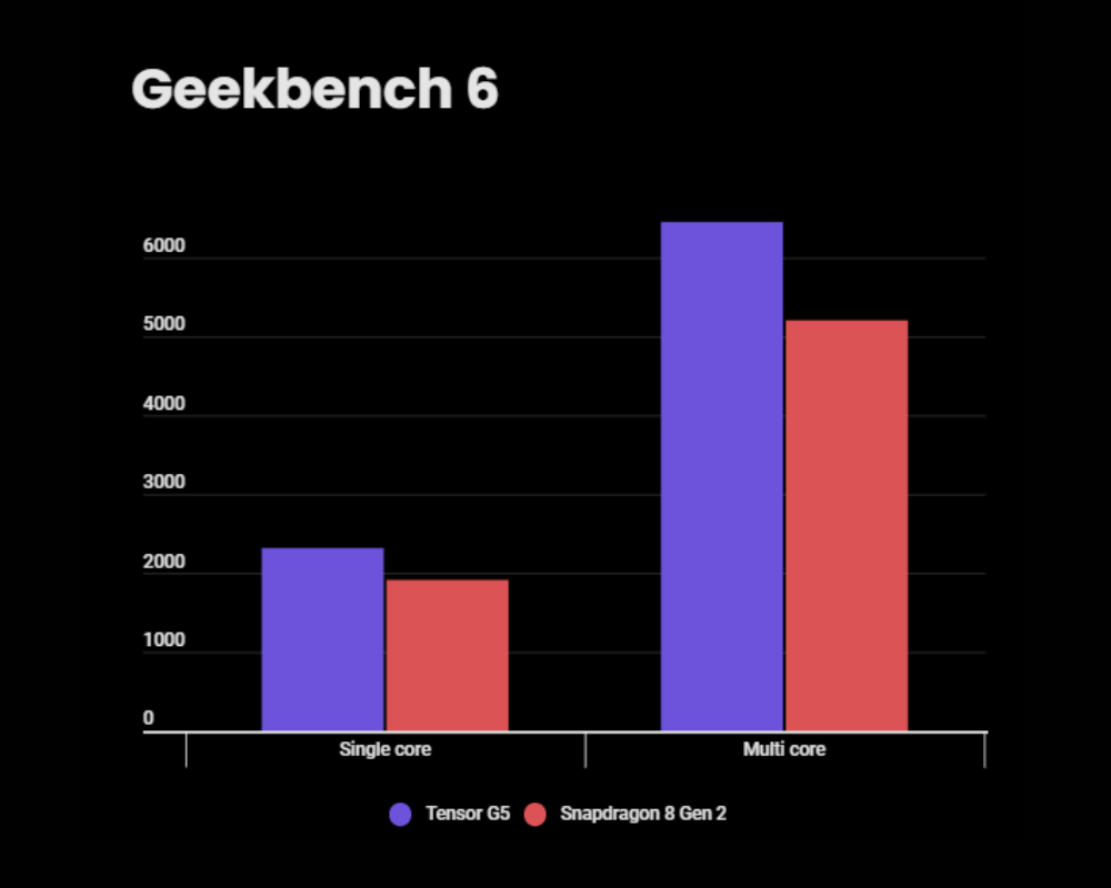 Tensor G5 vs Snapdragon 8 Gen 2: Benchmark score