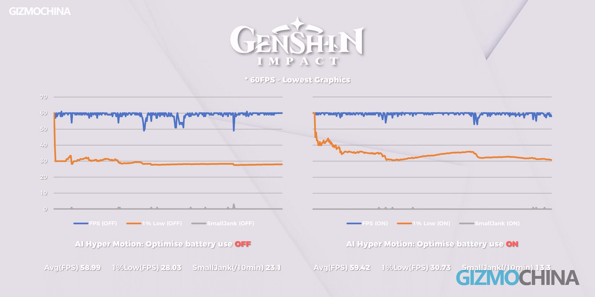 Here, we can compare the data before and after enabling this option, and the results are obvious. Whether it is average frame rate, stutter count, or 1% Low, the performance after enabling is significantly better than before. Power consumption does not change much, and the temperature is much lower than when it is not enabled. Because this option does not trigger interpolation, latency will certainly be lower than option one. If you are playing PVP mobile games, I would recommend enabling this option.