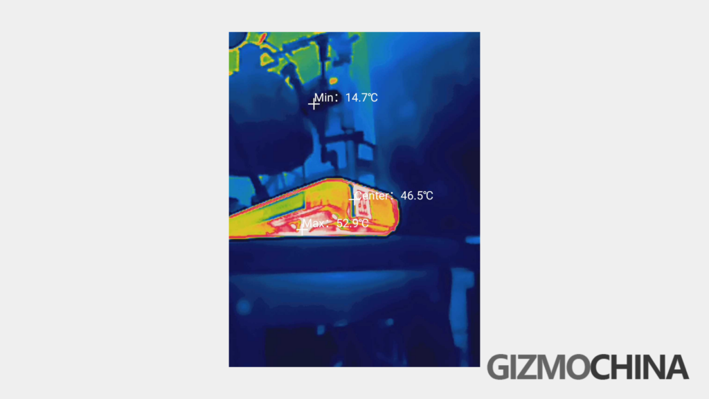 We also tested the power consumption and temperature, with the max brightness and max volume, it turns out that it takes about 12% of battery for a 30mins of play. Which means, you can pretty much watch a 2hrs of film for 2 times. And the max temp is of course from the projector, it is 54 degree Celsius maximum, a good temp control.