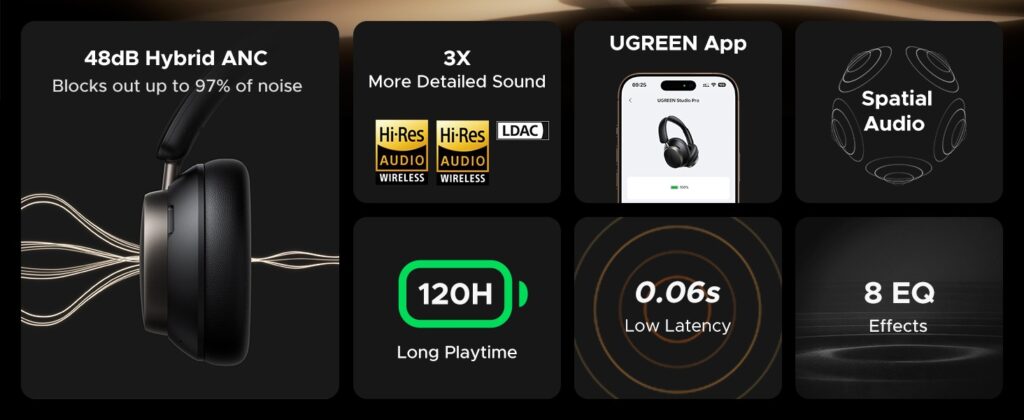 UGREEN has introduced its new Studio Pro headphones, featuring active noise cancellation, Hi-Res audio support, and an extended 120-hour battery life.