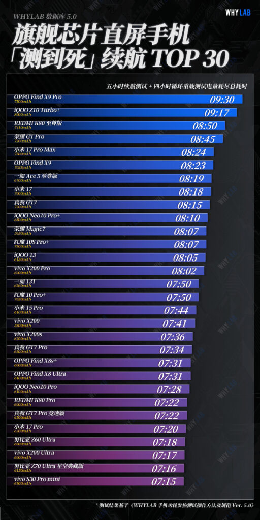 A separate round of testing from WhyLab showed similar results. The Find X9 Pro reportedly lasted 9 hours and 30 minutes, compared to the Xiaomi 17 Pro Max’s 8 hours and 24 minutes — a difference of over an hour. What’s interesting is that the Xiaomi uses Qualcomm’s latest Snapdragon 8 Elite Gen 5 chip, while Oppo’s flagship runs on MediaTek’s Dimensity 9500. It’s possible that Oppo’s software tuning, particularly with ColorOS 16’s power management, is playing a big role in the results.
