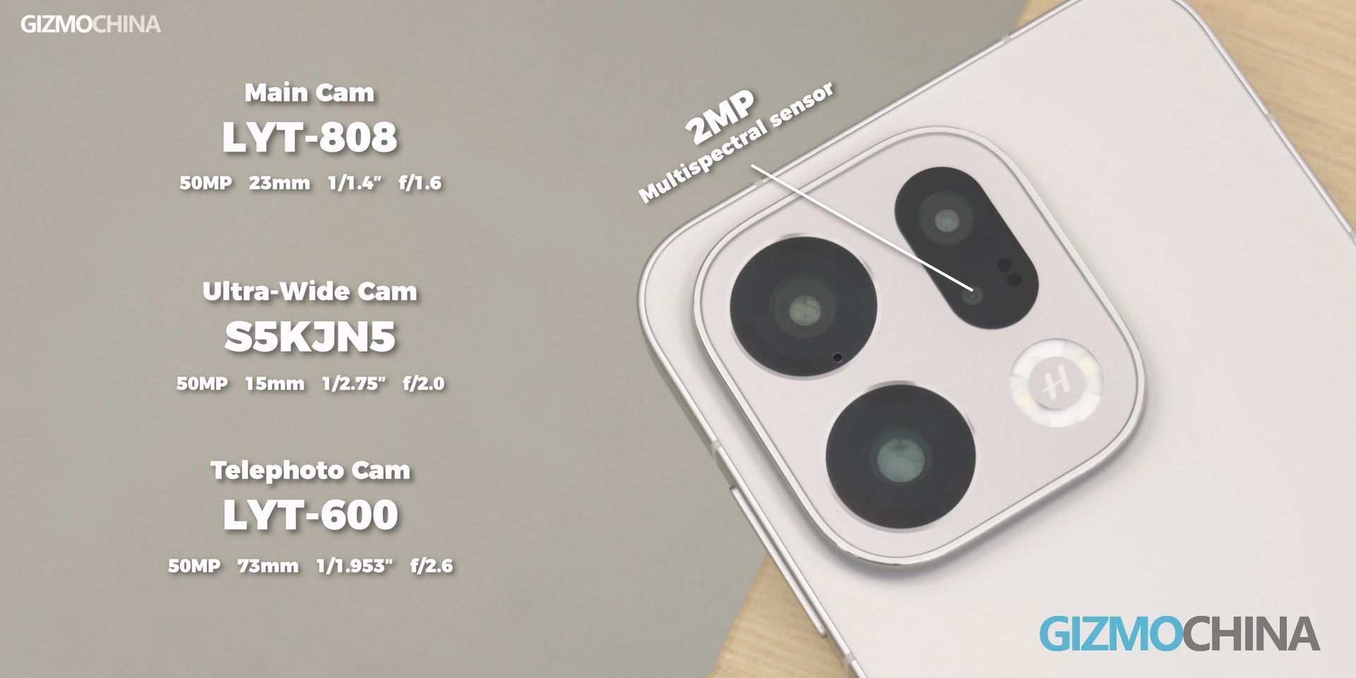 Both phones share the same ultra-wide-angle camera and include a 2MP multispectral sensor. The main difference in their camera systems lies in the main and telephoto cameras. The standard version uses a smaller main sensor and an LYT-600 telephoto cam, which does not support macro function. The Pro version, on the other hand, uses an LYT-828 main sensor and a brand-new 200MP Samsung HP5 telephoto camera, officially certified by Hasselblad.