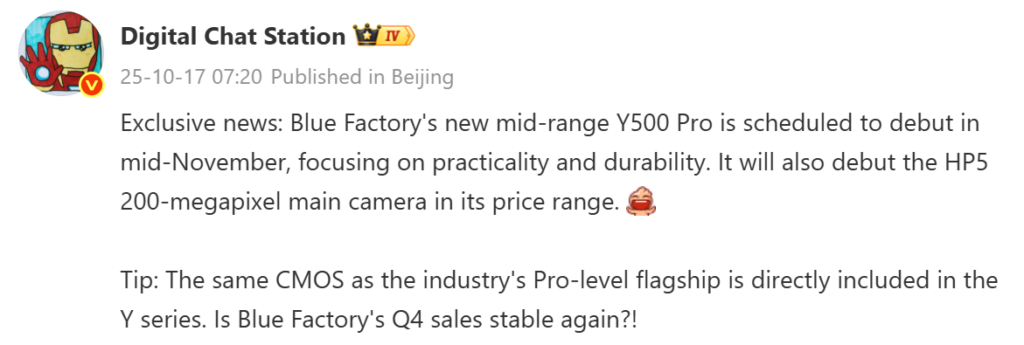 According to DCS, Vivo is preparing to launch the Y500 Pro mid-range phone by mid-November in China. He added that the phone will focus on being both practical and durable, appealing to users who prioritise reliability in daily use.