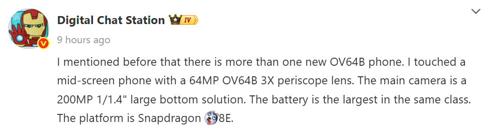 While details about the ultra-wide camera remain undisclosed, the leak confirms the presence of an OmniVision OV64B 64-megapixel periscope telephoto lens with 3x optical zoom.