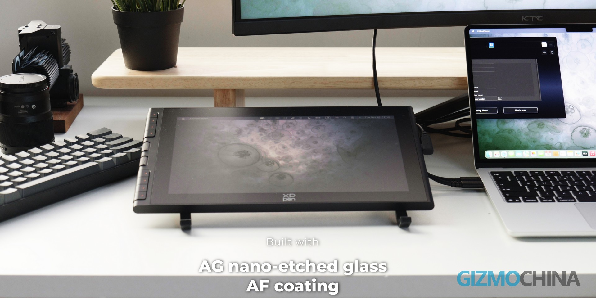 Authentic paper-like texture: The screen surface is coated with AG nano-etched glass. Under a microscope, it reveals dense 1.2-micron protrusions, closely mimicking the fiber structure of real sketch paper. In practice, the friction between the stylus nib and the screen is higher than that of regular glass. With a friction coefficient of 0.35, it prevents lines from straying due to slippage, making it highly comfortable for artists accustomed to traditional paper drawing.