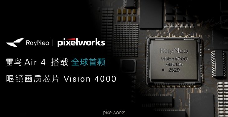 At the heart of the RayNeo Air 4 is the new Vision 4000 image quality chip, co-developed with Pixelworks, a company known for its display processing technology.