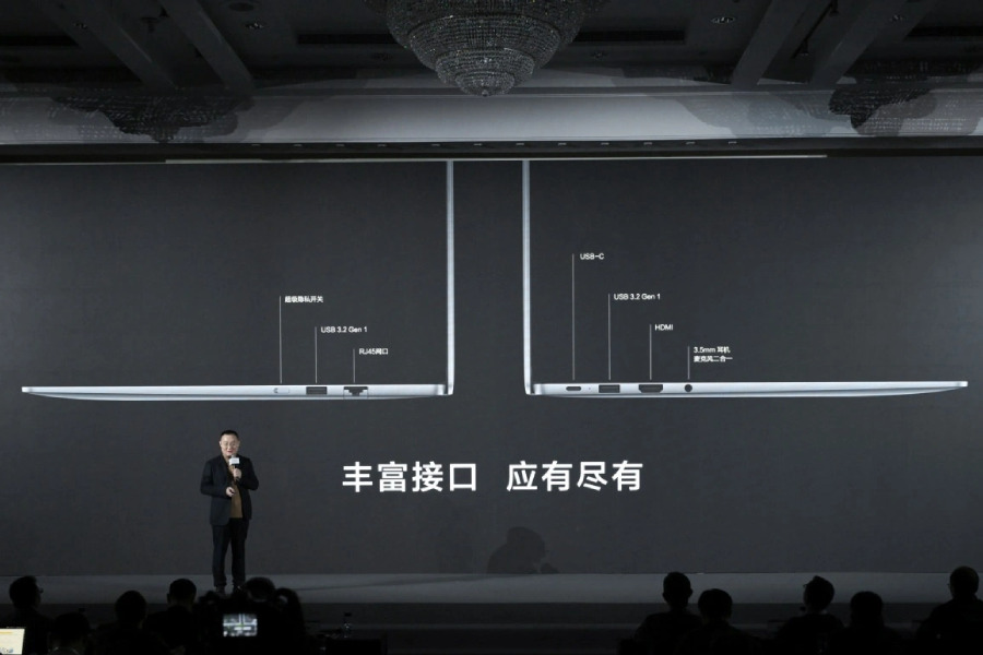 The HM740 also includes Huawei’s super privacy switch, along with the ports you’d expect from a business machine: USB 3.2 Gen 1, USB-C, HDMI, RJ45 Ethernet, and a 3.5mm audio jack.