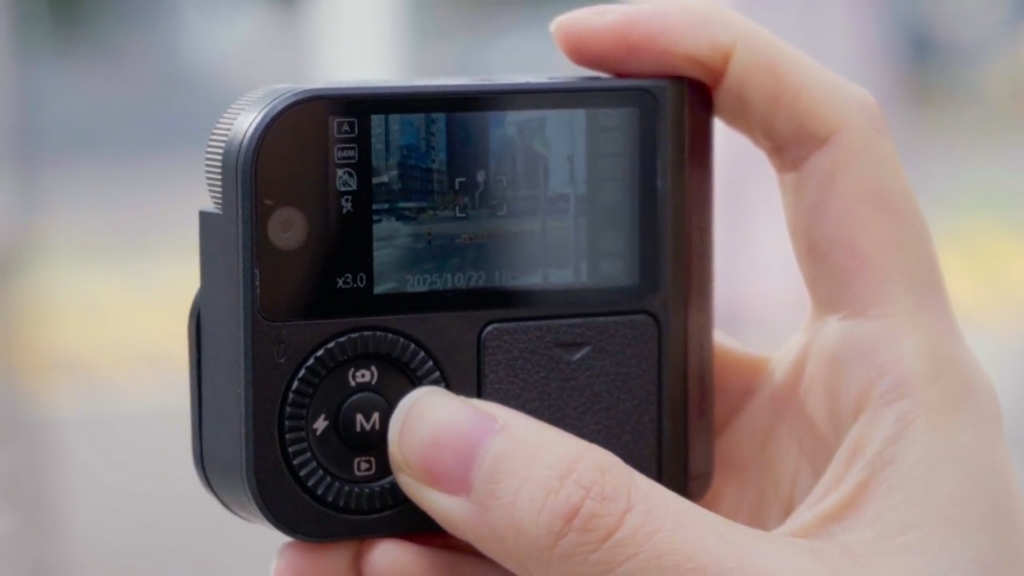 The first thing you notice is the familiar sliding panel. Instead of a power button, the whole front plate drops down in one smooth motion, revealing the lens. It’s a clever workaround that keeps the optics protected in your pocket while giving you that old-school “ready to shoot” moment. It’s the kind of small, tactile detail smartphone cameras can’t really replicate.