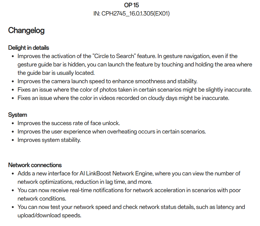 OnePlus has begun rolling out OxygenOS 16.0.1.305 for the OnePlus 15, marking the second update since its global launch a couple of weeks back. Like the previous update, the new OxygenOS 16.0.1.305 also packs multiple fixes and improvements to polish the functionality and user experience of this new device . The update is live in India and is being pushed out in batches. Only a small percentage of users will receive it today, with a wider rollout planned over the next few days. The build number for this release is CPH2745_16.0.1.305(EX01). OnePlus notes that update content may vary across regions.
