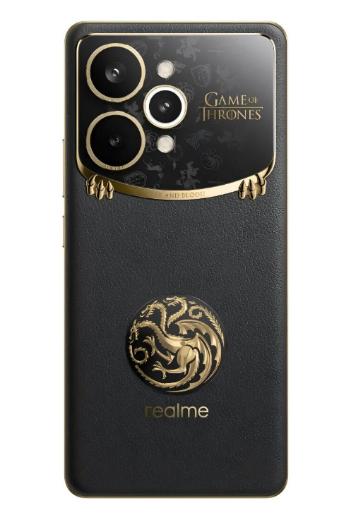 The Realme 15 Pro Game of Thrones Limited Edition stands out as a uniquely crafted smartphone designed for fans of the iconic series. Its back panel features heat-sensitive dragonscale leather that shifts from black to red when warmed, symbolizing dragonfire. Golden accents, dragon claw-styled camera housing, and House Targaryen insignias complete this dramatic aesthetic. The device also includes an Ice & Fire-inspired UI with custom wallpapers, icons, animations, and sound effects that bring Westeros to life.