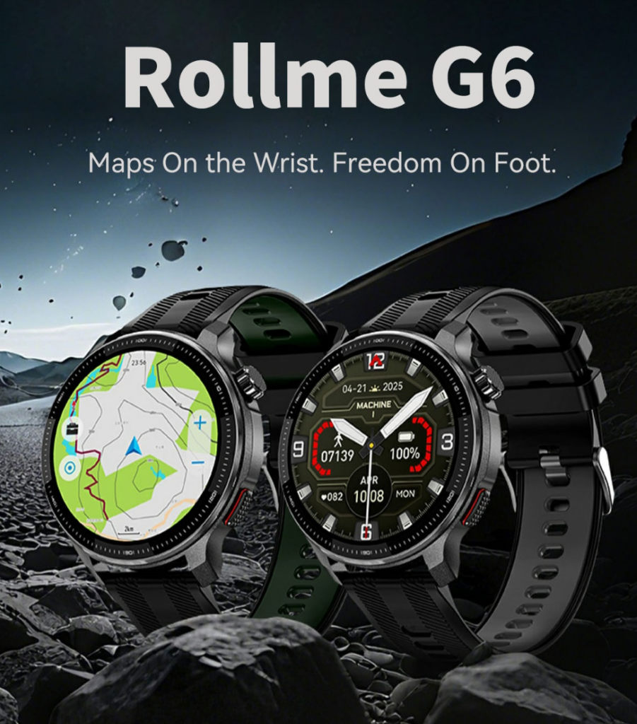 Rollme has officially introduced the Rollme G6 smartwatch in global markets, bringing strong outdoor-focused features to users who prioritize accuracy, toughness and independent navigation. Some of its key features include dual-band six-satellite positioning, offline map support, a rugged military-grade construction and long battery endurance. Read on to know more in detail about the Rollme G6.