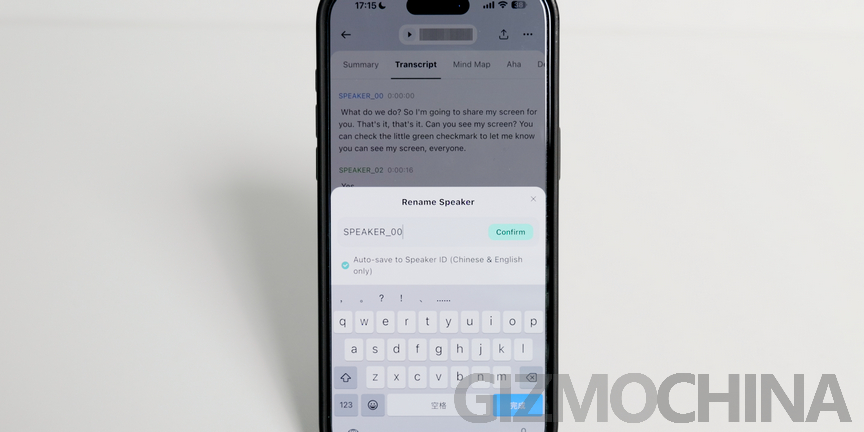 I have a one-hour-long meeting in French here, and I think it managed to do the job really well. It separates each speaker clearly, and records everything in the finest detail. It says there is voiceprint recognition tech inside, so it can identify each speaker, and then mark an ID on them in the App. I think it is super helpful, let’s say it’s a long boring meeting, and you just need to get the info and CTAs from your boss, then you just check what he or she said, and do what you have to do right away. One minor limitation in this part is that, it only supports Chinese and English, I hope more languages will be supported in the future.