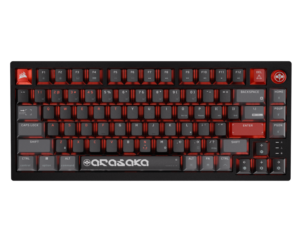 The main product in the collection is the Arasaka themed CORSAIR K65 PLUS WIRELESS 75% RGB Mechanical Gaming Keyboard. It is available only in the North American layout. The keyboard features Arasaka logos and insignias on the keycaps and the rotary dial. It comes with reliable wireless connectivity suited for netrunners and uses smooth MLX switches. CORSAIR confirmed that it will only be available in limited quantities.