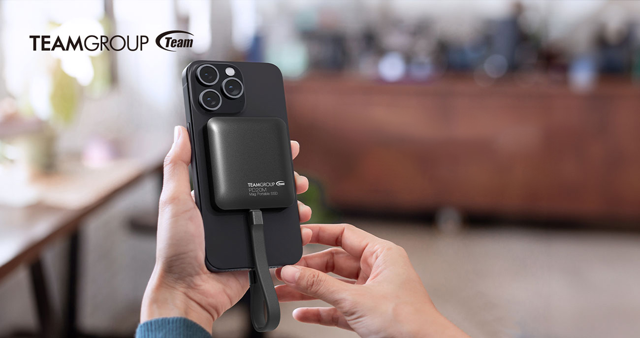 The PD20M SSD from TeamGroup focuses on size and portability. It weighs just 40g and measures 8.2mm thick, making it thinner than the iPhone 15. The USB 3.2 Gen 2×2 interface provides 20Gbps transfer speeds, allowing the drive to support continuous 4K 60fps ProRes recording.