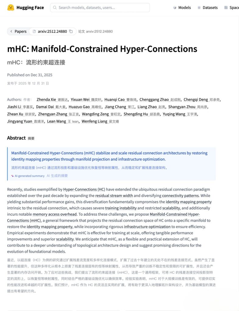 The method, called manifold-constrained hyperconnection (mHC), focuses on making large AI models easier and more reliable to train. Instead of chasing raw performance gains, the idea is to reduce instability during training—a common issue that forces companies to restart expensive training runs from scratch.