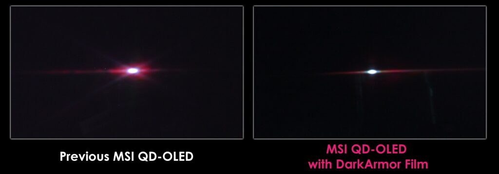 Both monitors feature DarkArmor Film technology, addressing common QD-OLED weaknesses. This coating eliminates purple and reddish tints that appear on standard QD-OLED panels under ambient lighting. The film increases pure black levels by 40%, enhancing contrast and overall image quality. It also raises screen surface hardness from 2H to 3H, providing 2.5 times greater scratch resistance against daily use.