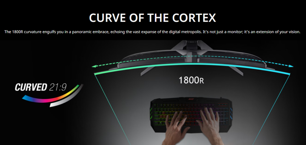 The monitor uses a 3440×1440 panel with a 1800R curve, keeping the familiar ultrawide format while targeting competitive players who care about motion clarity as much as immersion. Acer says the panel delivers a 0.03ms response time and supports AMD FreeSync Premium Pro to reduce tearing and stutter in fast-paced games.