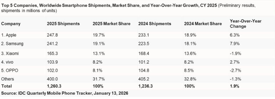 IDC’s smartphone shipment report for 2025 is out, and the overall takeaway is that the market remained mostly stable, both globally and in China. There wasn’t any major growth in shipments, but much of the momentum came from consumers shifting toward higher-end devices like foldables, which is a positive sign.