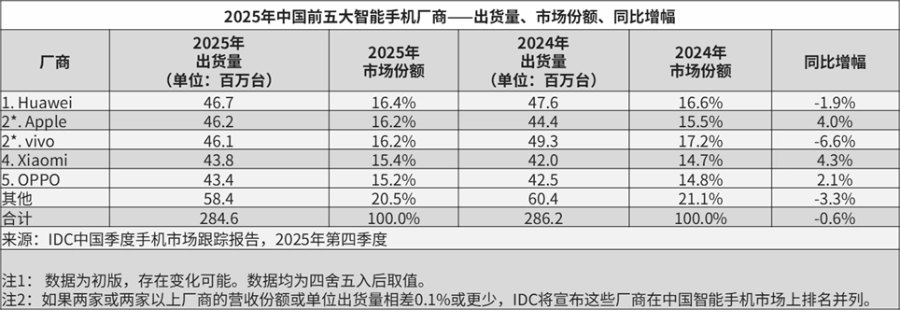For the full year, smartphone shipments in China totaled approximately 285 million units. But the shipments are still 0.6% less compared to 2024.