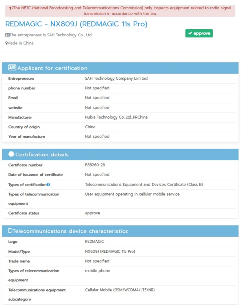It looks like Nubia is getting ready for another refresh in its gaming phone lineup. The RedMagic 11s Pro has now appeared in a certification listing, which usually means things are moving toward a launch.