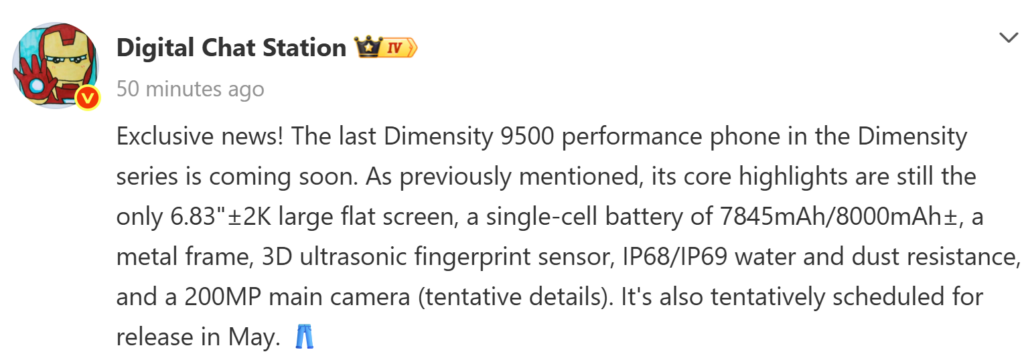 iQOO is reportedly working on a new flagship phone powered by the Dimensity 9500 chip for the Chinese market. While there is no clarity on the phone’s final moniker, it is said that it could be an iQOO 15 series device. Today, reliable tipster Digital Chat Station shared a new Weibo post revealing details about the alleged device.