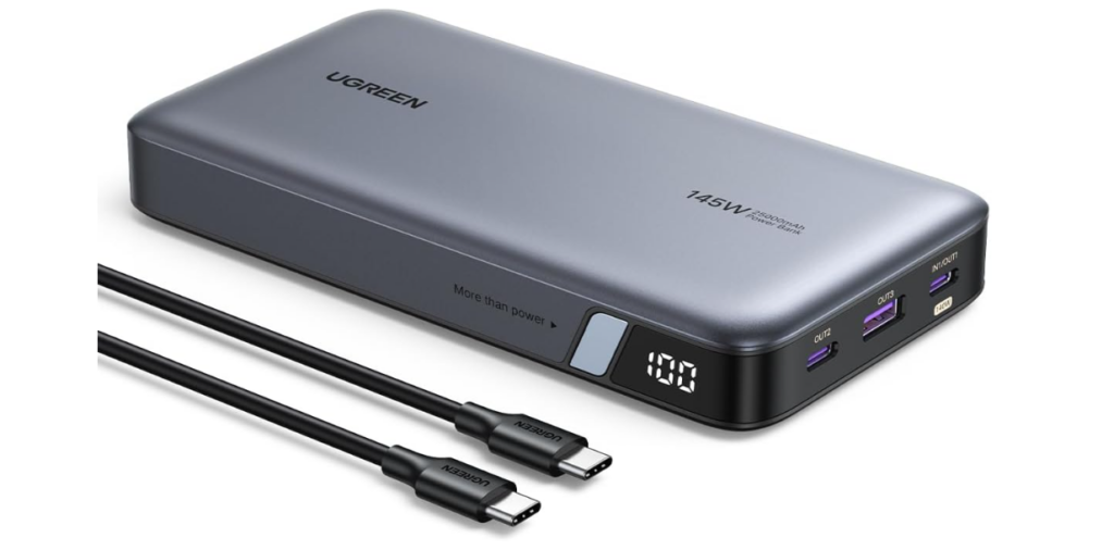 If you’re looking to grab a high capacity power bank, then this UGREEN Power Bank could be the best candidate for you. With 3-Port PD3.1 and QC 3.0 support, it offers charging speeds of 145W. Surprisingly, the users can fast charge the Power Bank with two different 65W PD chargers or cables. The compact design makes it easy to carry and use it on the go.