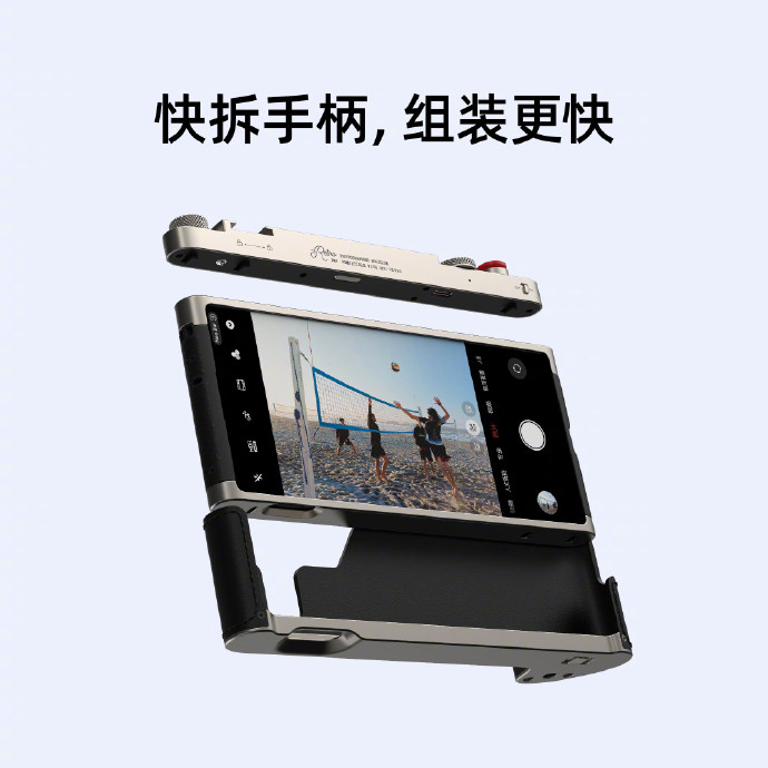 Building on the Z70S Ultra’s accessory system, Nubia’s new “professional photography kit” keeps a familiar design but adds a few meaningful upgrades. It attaches to the phone using a quick-release grip, instantly transforming the Z80 Ultra into a compact camera. There’s a dedicated shutter button on the top plate with a satisfying mechanical click, along with extra dials and buttons that give users a hands-on shooting feel — something longtime photographers will appreciate.